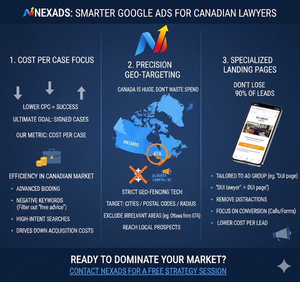 Ready to dominate the legal market in your city? Contact Nexads for a free strategy session tailored to Canadian lawyers.